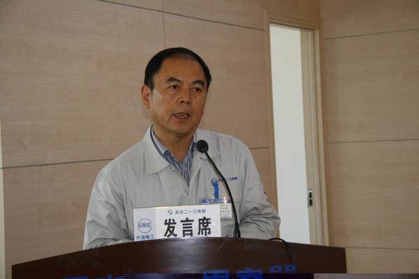 長城電工總經(jīng)理、二一三公司董事長張希泰主持大會(huì),并結(jié)合